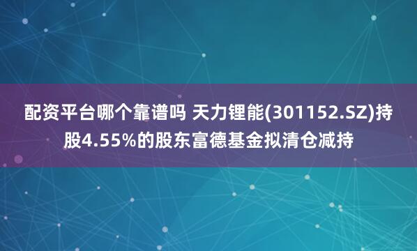 智通财经APP讯,天力锂能(301152.SZ)发布公告,河南富德高科新材创业投资基金合伙企业(有限合伙)(简称“富德基金”)持有公司股份540万股(占公司总股本的4.55%,按注销公司回购专用账户中的股份数后计算),计划自公告披露之日起15个交易日后的未来3个月内减持公司股份540万股(占公司总股本的4.55%,按注销公司回购专用账户中的股份数后计算)。